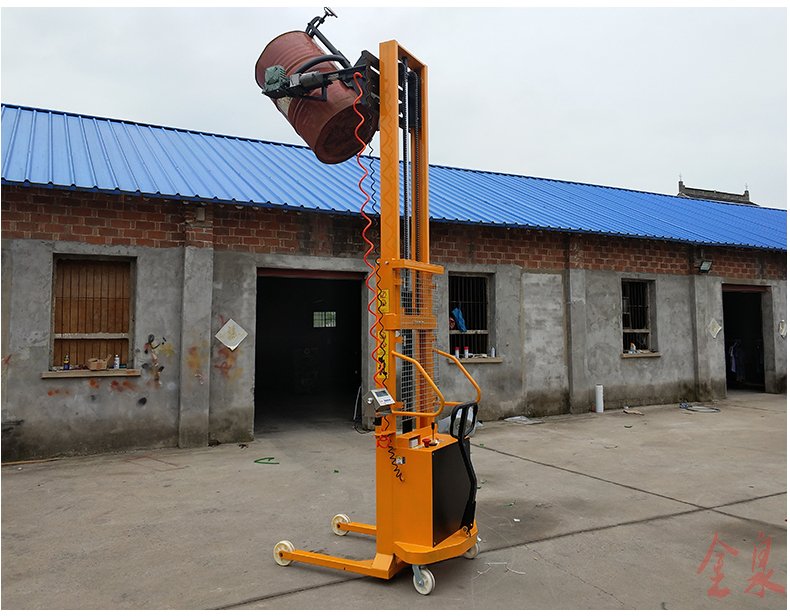 COTO翻轉(zhuǎn)式半電動(dòng)油桶裝卸倒料車為手推行走、電動(dòng)升高、翻轉(zhuǎn)方式可選為(手動(dòng)式或電動(dòng)式) 最大起升重量350Kg,起升高度1500-4500mm,前輪使用180MM直徑大輪,使手推行走更省力。該油桶車在空中可利用減速機(jī)作180-360度旋轉(zhuǎn),兼有手動(dòng)堆高車和油桶搬運(yùn)車雙項(xiàng)特點(diǎn),桶夾臂上端為鷹嘴機(jī)構(gòu),可牢固夾持油桶上沿,中間為手臂形夾臂,底部有一個(gè)拖舉裝置。電動(dòng)油桶搬運(yùn)裝卸車適合食品、油制品等流質(zhì)的裝卸及倒料或攪拌,在搬運(yùn)的同時(shí)可稱出產(chǎn)品的重量。可傾式半電動(dòng)油桶裝卸車大大提高效率,無噪音無污染。油桶夾有上下夾頂式和左右環(huán)抱式,晚上充電白天使用8小時(shí)以上。廣泛應(yīng)用于涂料油墨、膠粘劑、染料、顔料、農(nóng)藥、造紙、皮革、石油化工、碳酸鈣等行業(yè)。