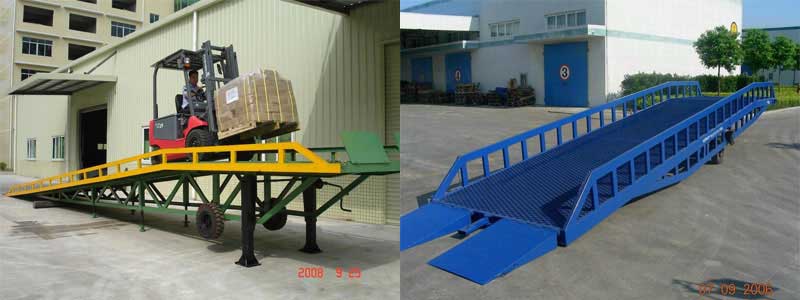 用于現(xiàn)場無裝卸貨平臺或需要流動裝卸貨物的場所。如果物流現(xiàn)場沒有裝卸貨平臺,作為補救措施,移動式登車橋是非常適用的方案之一,移動式登車橋相當(dāng)于一個移動的鋼結(jié)斜坡,叉車同樣能直接駛?cè)肟ㄜ囓噹麅?nèi)部進行批量裝卸作業(yè)。只需單人操作,不需動力電源,即可實現(xiàn)貨物的安全快速裝卸。