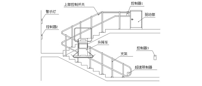 斜掛式輪椅升降機(jī),一種安裝在樓道系統(tǒng)利用電機(jī)牽引沿著軌道上下移動(dòng)并運(yùn)載乘客的無(wú)障礙安全裝置。它由驅(qū)動(dòng)系統(tǒng)、導(dǎo)軌、繩輪鏈、移動(dòng)平臺(tái)等組成。用于建筑樓道系統(tǒng)中,乘坐輪椅或爬樓梯困難的人員攀爬樓梯的專(zhuān)用設(shè)備。主要由主驅(qū)動(dòng)系統(tǒng),輔助驅(qū)動(dòng)系統(tǒng)、主控系統(tǒng)和安全系統(tǒng)組成。
