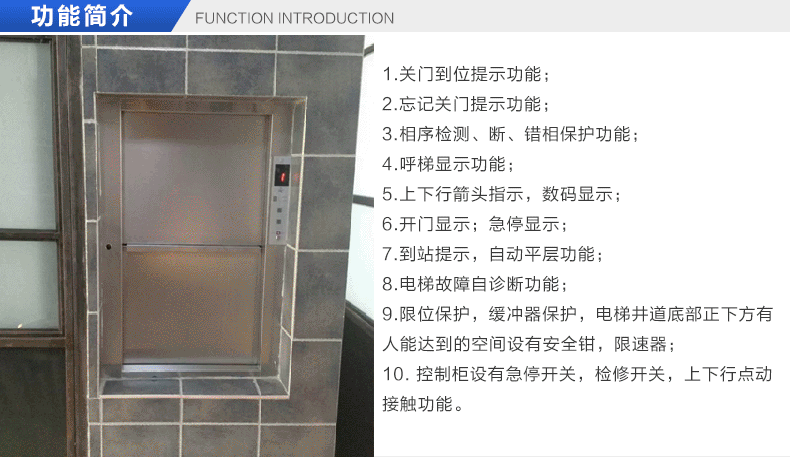 2.效率高:上行下行同時(shí)進(jìn)行,循環(huán)傳菜,一臺(tái)抵六臺(tái)傳統(tǒng)的廂式傳菜梯。