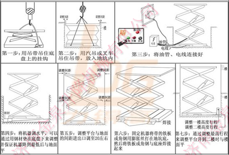 升降貨梯可在位置的升降工作平臺固定(固定),用鐵膨脹螺栓的升降平臺是固定的,然后在底盤與地面的間隙可以填充水泥砂漿或嵌入式鐵設(shè)置在灌溉土地坑(尺寸300×300×12毫米厚的鋼板上),安裝時底盤與預(yù)埋鐵焊接.