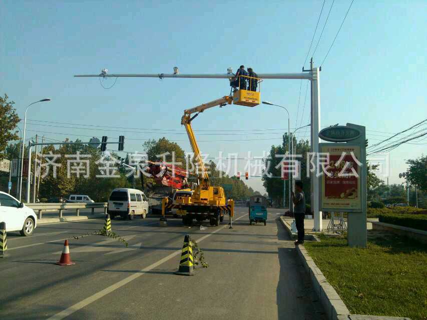 車載折臂式液壓升降機,路障維修首選高空作業(yè)車。濟南金泉為客戶定制的車載折臂式升降機已經(jīng)投入使用,路障維修、更換路燈等首選的高空作業(yè)車。