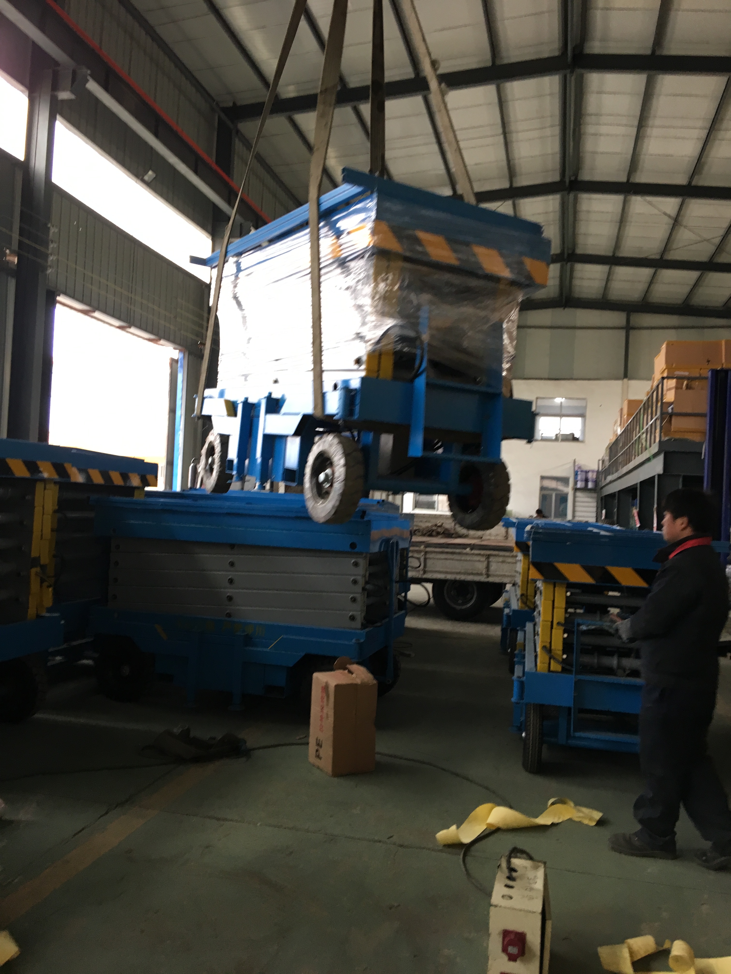 2017年第一臺(tái)移動(dòng)升降機(jī)發(fā)走,客戶訂購(gòu)8米實(shí)心輪胎帶遙控器380v動(dòng)力單元的移動(dòng)剪叉升降機(jī)!訂購(gòu)熱線15662757281