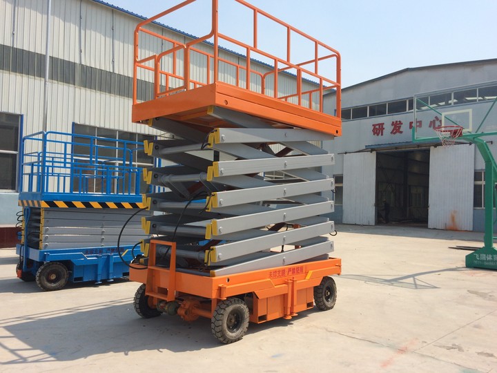 產(chǎn)品說明:移動(dòng)剪叉式升降機(jī)的剪叉結(jié)構(gòu)主要采用鋼鐵矩形管制作,它的剪叉機(jī)械結(jié)構(gòu),使升降臺(tái)起升有較高的穩(wěn)定性,寬大的作業(yè)平臺(tái)和較高的承載能力,使高空作業(yè)范圍更大、并適合多人同時(shí)作業(yè)。平臺(tái)升降動(dòng)力為手動(dòng)或電動(dòng),電手兩用或遙控器控制,在停電時(shí)仍可使用。本產(chǎn)品具有移動(dòng)靈活、升降平穩(wěn)、操作方便、載重量大等特點(diǎn)。升降動(dòng)力分為220V或380V電源(也可以用電瓶、柴油機(jī)為升降動(dòng)力),采用意大利和國(guó)產(chǎn)液壓泵站,臺(tái)面設(shè)有防滑絕緣塑質(zhì)扣板,更換方便,整體美觀大方。五、分類: