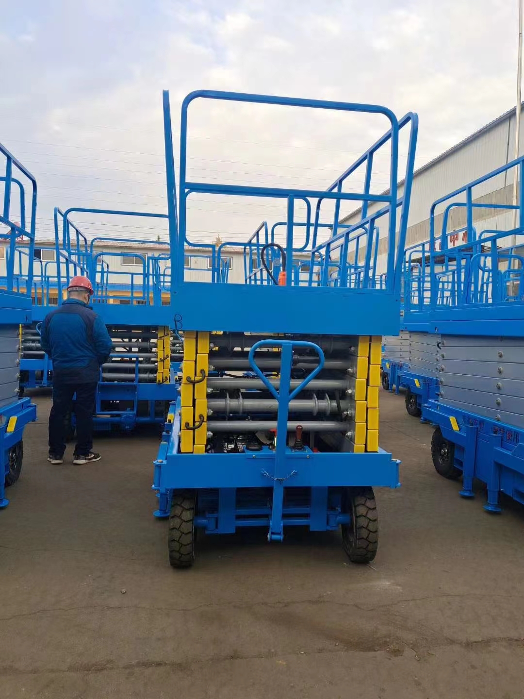 四輪移動(dòng)式升降平臺(tái)是用途廣泛的高空作業(yè)專用設(shè)備。它的剪叉機(jī)械結(jié)構(gòu),使升降臺(tái)起升有較高的穩(wěn)定性,寬大的作業(yè)平臺(tái)和較高的承載能力,使高空作業(yè)范圍更大、并適合多人同時(shí)作業(yè)。升降動(dòng)力分為220V或380V電源,柴油機(jī),或電瓶動(dòng)力源,特殊環(huán)境也可采用防爆泵站及防爆電器。升高4——22米,載重0.3—3噸。采用意大利和國(guó)產(chǎn)液壓泵站,臺(tái)面使用防滑絕緣扣板,具有防滑,絕緣、安全,請(qǐng)放心使用。它使高空作業(yè)效率更高,安全更保障。